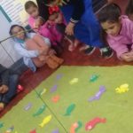 Cada Peixe pescado tinha um número atrás onde os alunos iam ganhando pontos de acordo com os números que estavam no peixe.