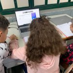 Na sala de informática, os alunos em duplas, fizeram uma pesquisa relacionada aos 5 R’s: reutilizar, reduzir, reciclar, repensar e recusar. Com estas informações em mãos, discutimos sobre o assunto.