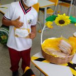Os alunos do primeiro ano pesquisaram sobre o significado do nome girassol que quer dizer “flor do sol”. Em sala de aula explicamos a eles que a flor tem esse nome porque ela tem como característica principal girar o caule em direção ao sol. Os alunos foram falando na roda de conversa que a flor era amarela como o sol e que na pesquisa descobriram que é uma flor que trás felicidade. Realizamos um drive thru e entregamos as sementes de girassol para os alunos que estão com aula online.