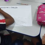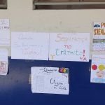A sala foi dividida em grupos. Cada grupo pesquisou no computador algum assunto sobre segurança no trânsito. Temas relacionados, mas diferentes. Por exemplo: se eu ver um acidente, como agir; placas de trânsito e suas funções, etc.