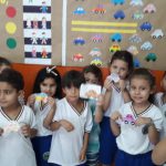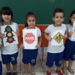 Durante o mês de maio, foi trabalhado muito com os alunos sobre o tema, em uma linguagem especifica para educação infantil, através de leitura compartilhada, abordou o significado do trânsito, meios de transportes, faixa de pedestres, realizou várias atividades de recortes, sequencia numérica e sinais de trânsito.