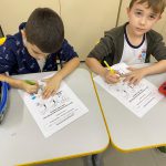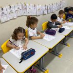 A professora iniciou a atividade com uma roda de conversa para saber quais são os conhecimentos prévios das crianças em relação à importância da preservação do meio ambiente. Para isso, propôs que a turma citasse exemplos de ações para preservá-lo. Nesse momento, várias crianças participaram da discussão dando suas contribuições.