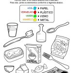 Vamos fazer uma coleta seletiva dos materiais? Para isto, pinte os elementos conforme a legenda.