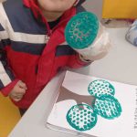 Pintura com plástico bolha e rolo de papel higiênico.