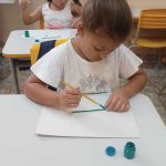 Após a pintura, os palitos foram utilizados para montar uma linda flor, com forminhas de brigadeiro, representando as pétalas. A proposta incentivou o reaproveitamento de materiais que poderiam ser descartados, mostrando às crianças que é possível criar coisas bonitas a partir da reciclagem.