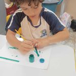 Como parte do trabalho sobre o meio ambiente e a importância da reciclagem, as crianças participaram de uma atividade criativa e sustentável. Utilizando palitos de sorvete reciclados, realizaram a pintura com tintas coloridas, explorando cores, coordenação motora e criatividade.