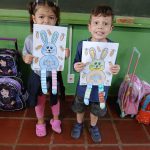 APÓS A LEITURA E CONVERSA SOBRE A PÁSCOA, AS CRIANÇAS EXPLORARAM A FIGURA DO COELHO, SÍMBOLO DESTA DATA. EM SEGUIDA, REALIZARAM A PINTURA LIVRE E FIZERAM DOBRADURA COM AS PERNAS DO COELHO, UTILIZANDO RETALHOS DE PAPEL COLORIDO.