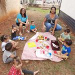 Sabendo da importância da leitura no desenvolvimento dos pequenos a professora uniu o útil ao agradável. Explorou o meio ambiente em torno da escola onde os pequenos puderam observar e contemplar a natureza, o que pode nos oferecer desde que cuidemos e preservemos, com um delicioso piquenique e leitura . O livro escolhido foi Dia de Sol do escritor Renato Moricon.