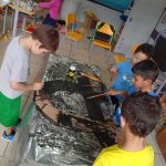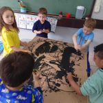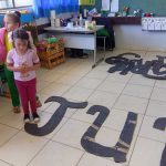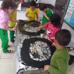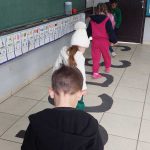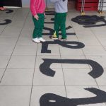 Um trabalho de tirar o fôlego. Recortes pela professora em papelão , alfabeto gigante maiúsculo cursivo, As crianças entraram com a mão de obra pintura em equipe. Depois puderam usufruir as pistas andando sobre elas, . Esse trabalho tem por objetivo desenvolver a coordenação ampla, noção corporal que beneficia o aprendizado da escrita e aquisição da leitura propriamente dita, também assimila a escrita da nossa cultura da esquerda para direita , de cima para baixo. sem contar que fazem se divertindo.