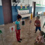 INICIEI A MINHA AULA COM RODA DE CONVERSA ,FALAMOS DA IMPORTÂNCIA DE RESPEITAR O SEMÁFORO, AS PLACAS , QUE DEVEMOS TOMAR CUIDADO AO ATRAVESSAR AS RUAS . NO PÁTIO DA ESCOLA EXPLICAMOS UM POUCO O SIGNIFICADO DAS PLACAS ,PARA QUE SERVE .