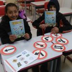 Fizemos a leitura da Revista Zé Quest – 2014, Roda, Roda, roda rodovia, levei as placas até os alunos para fazerem o reconhecimento e nomeá-las.