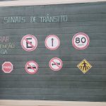 Após a apresentação das placas, foram colocadas todas na lousa e cada aluno escolheu um colega e disse qual placa ele deveria encontrar.
