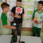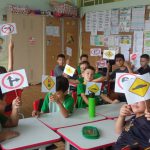 Na atividade os alunos puderam conhecer as placas, aprendendo o significado de cada uma, e realizaram atividade lúdica, construindo um trânsito e andando por ele.