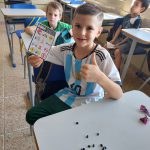 Nessa aula assistimos um vídeo para conhecer algumas placas de trânsito, verbalizamos e debatemos os significados de cada uma, e o porquê devemos seguir suas instruções. Logo após organizamos um bingo, elaborado com as placas que havíamos conhecido.