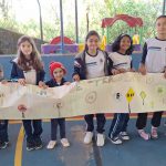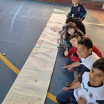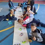 Após uma aula e roda de conversa sobre diversos placas, os alunos do 5⁰ ano junto com a turma do Infantil I confeccionaram cartazes em grupos sobre placas de sinalização de trânsito que foram disponibilizados pelo pátio da escola, ressaltando a importância de saber o significado de cada uma.