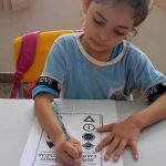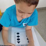 Apresentamos diferentes formas geométricas relacionadas às placas (círculo, triângulo, quadrado e retângulo) e as crianças puderam associar cada uma a um tipo de sinal. Exploramos também as cores mais usadas, como vermelho para atenção e azul para informação.