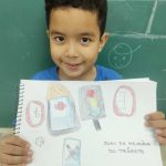 Desenvolvimento: Iniciamos o nosso trabalho com uma roda de conversa sobre sinalização no trânsito e falamos sobre as diversas placas. Conhecemos 18 placas e seus significados. As crianças participaram trazendo suas experiências e vivências do dia a dia com suas famílias. Na sequência realizamos um jogo da memória com as 18 placas (meninos X meninas). Na sequência, fizeram o registro da brincadeira no Caderno de Artes