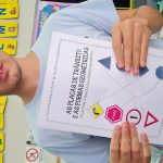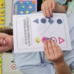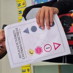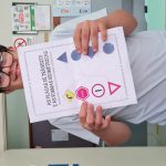 A professora Taiara e auxiliar Vânia realizaram na Semana do Maio Amarelo alguma atividades com seus alunos relacionadas ao trânsito. Os alunos puderam além de reconhecerem as formas geométricas, associaram ao formato das placas ligando sombra a objeto.