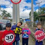 TRABALHAR AS PLACAS DE TRÂNSITO NAS RUAS PRÓXIMAS A ESCOLA.