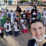 Logo após, professores e alunos foram até a praça central da cidade, entregar panfletos com frases sobre o dia mundial do meio ambiente aos motoristas e pedestres, entregaram também lixocar e mudas de árvores.