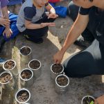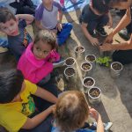 Nesta aula iniciamos com as nossas plantações de alface, salsinha, cebolinha, cenoura, coentro, pimentas, moranguinho, hortelãs e outros. Em seguida juntamente com a professora as crianças plantaram as mudas nas garrafas, latas, caixas e outros. Foi uma atividades que eles adoraram por conta de mexer com terra, todos participaram.