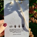 No cartão havia várias sementinhas de rúcula, que plantamos na nossa escola.