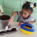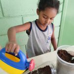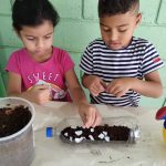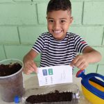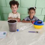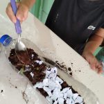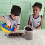 Nessa atividade as crianças estão plantando o cartão de identificação que foi dado aos participantes no dia em que houve a formação do Projeto ARTERIS.