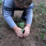 Plantando a mudinha de feijão!