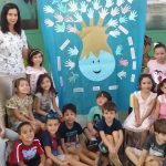Após as leituras, decidiram confeccionar um cartaz, para deixar a mensagem que tiraram dos textos trabalhos.