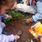 Eles se encantaram com a semente, mexeram na terra, se sujaram e principalmente se divertiram muito.