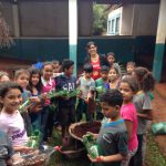Quando pensamos nessa questão, solicitamos aos alunos que trouxessem uma muda pequena de casa para plantar em uma garrafa pet, com o intuito do próprio aluno participar do momento do plantio e também do cuidado posterior.