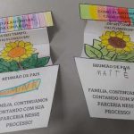 Foi entregue um desenho confeccionado por eles e um saquinho com sementes de girassol para ser cultivado em casa.
