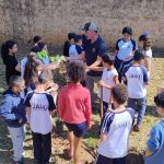 A explicação foi clara e envolvente, despertando a curiosidade e o interesse dos alunos, que fizeram várias perguntas e compartilharam experiências sobre o contato com o meio ambiente.