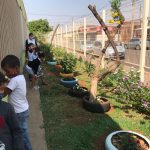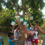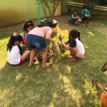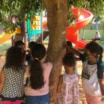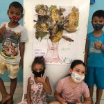 Fizeram um desenho de presente para as árvores da escola, recolheram folhas e fizeram colagens, pintaram, visitaram o jardim da escola para observar as flores, cores, diferenças e semelhanças, cheiro e tato.