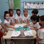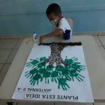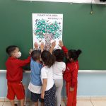 Desenvolvimento: Confecção de cartaz coletivo representando a importância do plantio das árvores para o meio ambiente e também utilizamos a música “A Sementinha”. Os frutos destas árvore serão os futuros defensores do meio ambiente!!!
