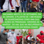No dia 21/09 o C.M.E.I Professora Lenita de Souza Gaya – Navegantes / S.C, no período vespertino juntamente com representante de alguns órgãos competentes do meio ambiente e representante do município tais como: prefeito, vereadores e outros plantaram quaresmeiras com intenção de arborizar de forma correta as ruas da cidade. A nossa instituição foi convidada  para participar deste evento tão importante por estarmos sempre engajados em projetos envolvendo temas como  meio ambiente e trânsito de acordo com o projeto escola.