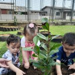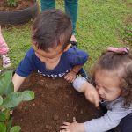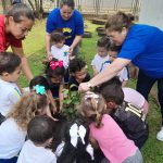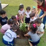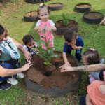 É dever da escola e família incentivar as crianças o respeito e cuidado com o Meio Ambiente. Com esse objetivo os alunos do CEI Tia Rose das turmas do Maternal I integral e Jardim I integral plantaram no pátio do CEI duas mudas de araçá, para dar lindos frutos, sombras frescas e ter uma vida saudável com ar puro.