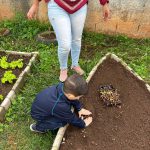Em seguida, cada criança preparou seu próprio vasinho, colocando a terra, as mudas e regando com cuidado. Foi um momento de muita participação e alegria — todos queriam fazer parte do processo. Durante o plantio, as crianças demonstraram curiosidade e responsabilidade, observando atentamente as orientações da professora e ajudando os colegas que precisavam de apoio.