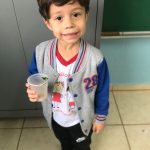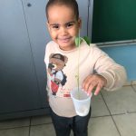 1- Após roda de conversa, os alunos colocaram em copinhos de café, algodões molhados.