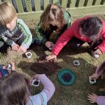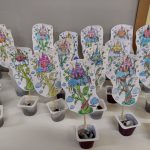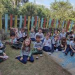 Colocamos terra no potinho, as sementes, regamos e fixamos o desenho do castelo. À medida que as sementes germinem, se fixem na terra e cresçam, vão alcançar o castelo, como na história. As crianças terão o desafio de cuidar das sementes que deverão ficar em local que tenha luz e calor do sol e regar sempre que necessário, pois já entendem que a planta retira do solo os nutrientes que necessita para crescer e produzir, bem como da água, ar, luz e calor do sol.
