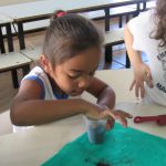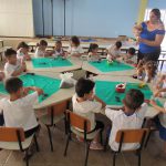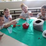 Após, a socialização e aprendizagem sobre a planta os alunos foram convidados a irem no pátio da escola e fazer o plantio do girassol.
