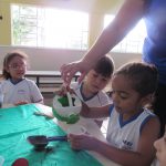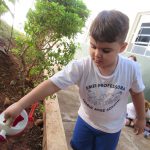Logo após, plantaram também no jardim da escola, lembrando a importância de aguar todos dias .