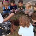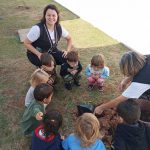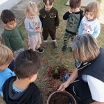Juntamente com as crianças, a professora irá até a área externa da escola, onde irão plantar mudas de árvore.