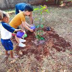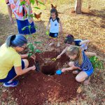 Durante a vivência, as crianças exploraram o solo, observaram as mudas, ajudaram no plantio e compreenderam a importância das árvores para a vida no planeta.