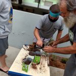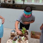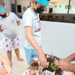 Logo após as professoras tiraram as dúvidas dos alunos em relação ao plantio, e logo em seguida foi hora de colocar a mão na massa e realizar o plantio das mudas.