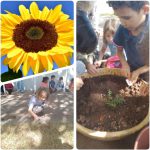 Para concluir, os alunos escolheram um espaço na área externa da escola e fizeram o plantio de diversos girassóis.