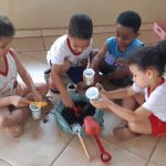 Para sensibilizar as crianças sobre o meio ambiente e o cuidado com as plantas, foi realizada uma atividade prática de plantio de sementes de cenoura e beterraba. Inicialmente, as crianças aprenderam sobre a importância das plantas para a saúde do planeta e para a nossa alimentação, e conversamos sobre como cuidar delas com carinho e atenção. Cada criança pôde escolher a semente que desejava plantar — cenoura ou beterraba — e recebeu um copinho de iogurte reaproveitado para usar como vasinho, reforçando a ideia de reutilização e cuidado com o meio ambiente. Em seguida, colocaram um pouco de terra nos copinhos, posicionaram a semente com cuidado e cobriram-na com mais terra. Após o plantio, cada criança regou sua semente e colocou o copinho em um local bem iluminado da sala, onde poderiam observar o crescimento ao longo dos dias. Durante o processo, falamos sobre como as plantas precisam de água, luz e cuidado constante para crescerem fortes. Depois que as plantas germinaram e cresceram um pouco, cada criança levou seu “vasinho” para casa com a orientação de replantar em um local mais amplo, para que assim pudesse crescer e se desenvolver melhor. A atividade reforçou o valor da paciência e responsabilidade, pois as crianças entenderam que devem cuidar diariamente dos seus “vasinhos” e observar as mudanças. Esse plantio não só promoveu uma conexão com a natureza, mas também despertou nos pequenos o respeito e a responsabilidade pelo meio ambiente, mostrando que até pequenas ações podem contribuir para um mundo mais verde e saudável.