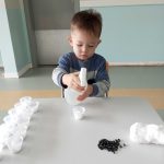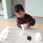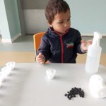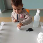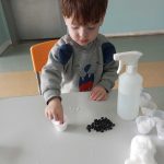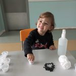 Após, cada criança irá colocar o algodão dentro do copinho, o feijão e em seguida regar o feijãozinho.