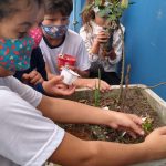 Solicitei que os alunos trouxessem de casa uma muda de alguma planta, deixei que eles escolhessem qual seria, aproveitei para despertar a consciência ecológica nos alunos, mostrando a importância das árvores para o planeta e sensibilizando as crianças para os benefícios da árvore no dia a dia de todos os seres vivos.