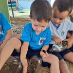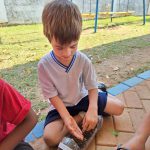 Já com a experiência do plantio na escola, os alunos realizaram o passo a passo com boa desenvoltura e participação. Todos, munido com seu vaso, preparou a terra, semeou e regou seu girassol; não se esqueceram do carinho necessário ao crescimento.